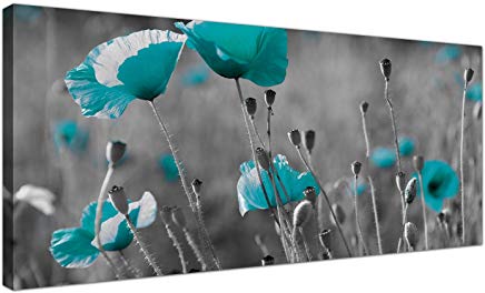 Cuadro de amapolas en Blanco, Negro y Turquesa